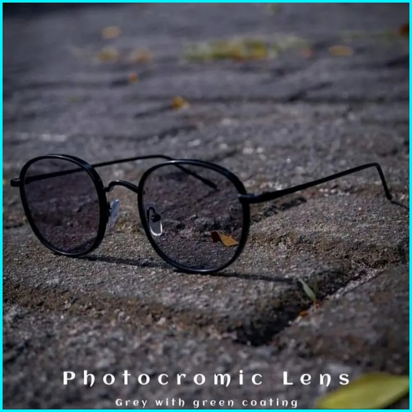Kacamata Photocromic Lensa Anti Radiasi Frame Titanium Unisex Gratis Box Dan Lap