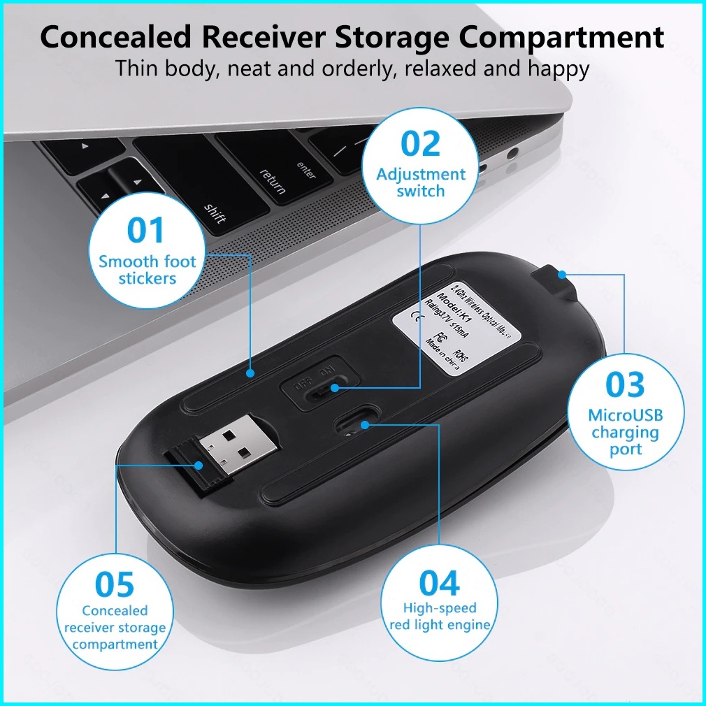 Mouse Bluetooth Rechargeable Wireless Mouse Ultra-thin Silent Led Colorful Backlit Gaming Mouse