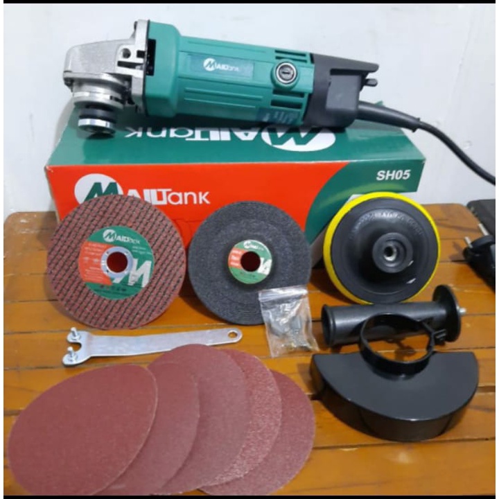 Paket Mesin Gerinda Mailtank SH05 Bonus Mata Potong, Poles, Piringan Amplas, Amplas (5pcs) | BISA Gerinda Tangan Murah