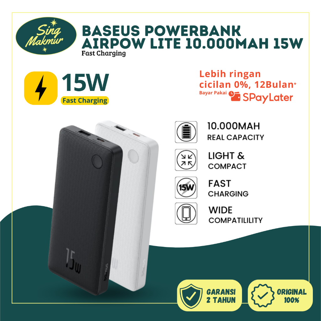 Baseus Airpow Lite Power Bank 10000mAh 15W Cosmic Black Original
