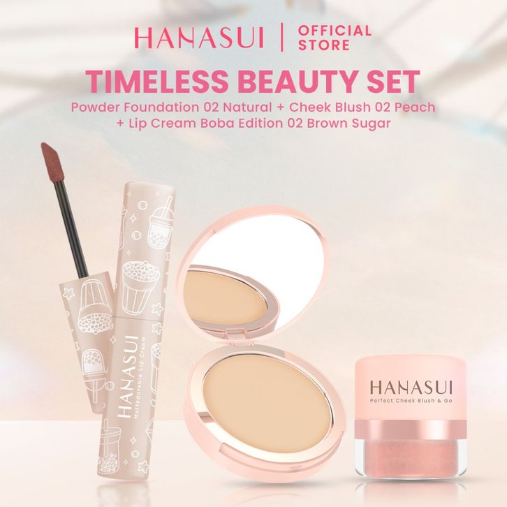 Hanasui Timeless Beauty Set - Bundle Powder Foundation, Cheek Blush, Lip Cream Boba