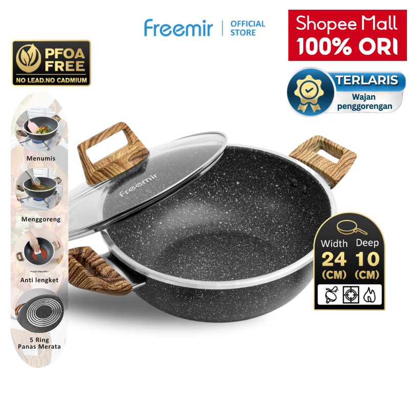 Gratis Ongkir Panci freemir Wajan Standar SNI Panci 24 CM Tinggi 10 CM Wajan Anti Lengket Panci Gagang Kayu