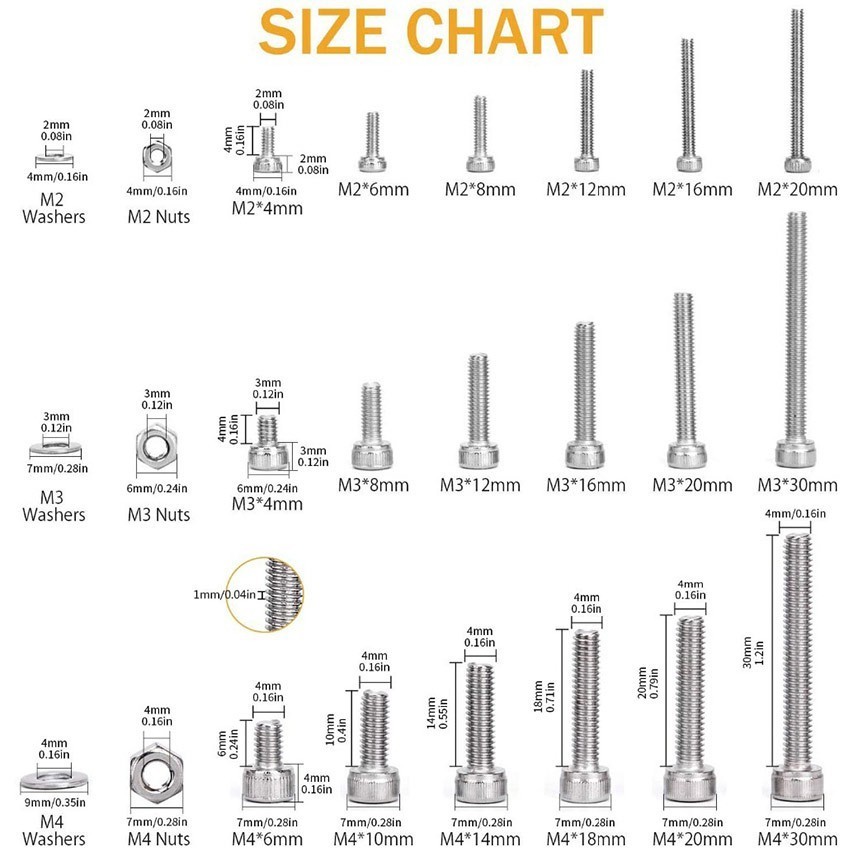 Baut Mur Washer Ring Set Bulat Hex M2 M3 M4 Paket 1080 pcs Kunci L Stainless SS 304 Hex Head Socket Screw Nut Washer