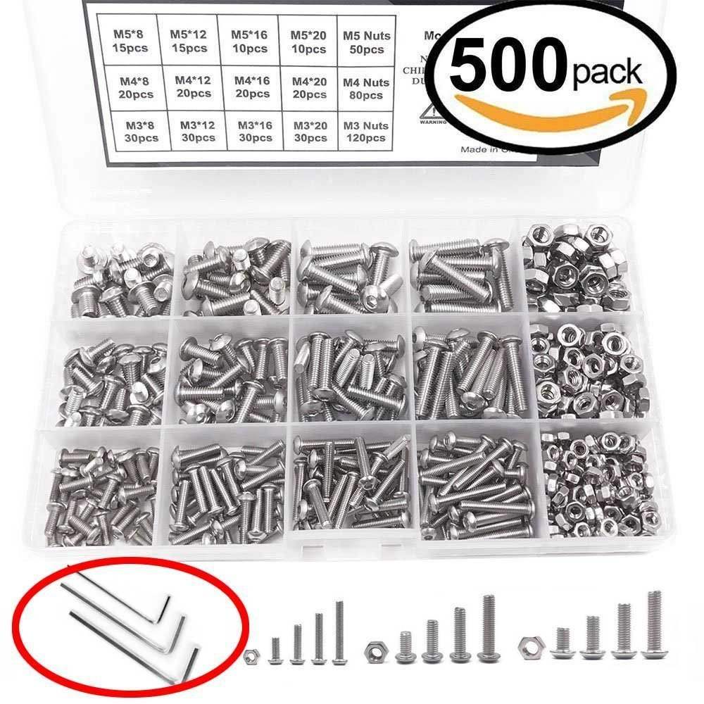 500pcs Baut Hex Countersunk Soket Mur dan Set Mur M3/M4/M5 Hexagon Socket Head Cap Screws Bahan Stainless Steel 304