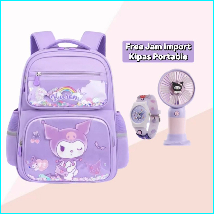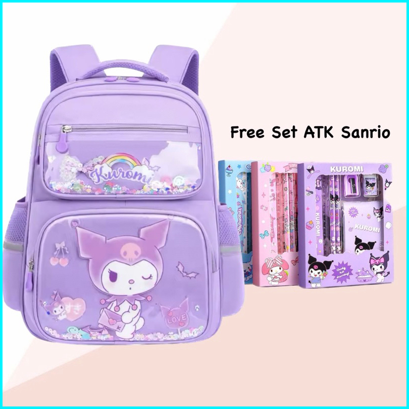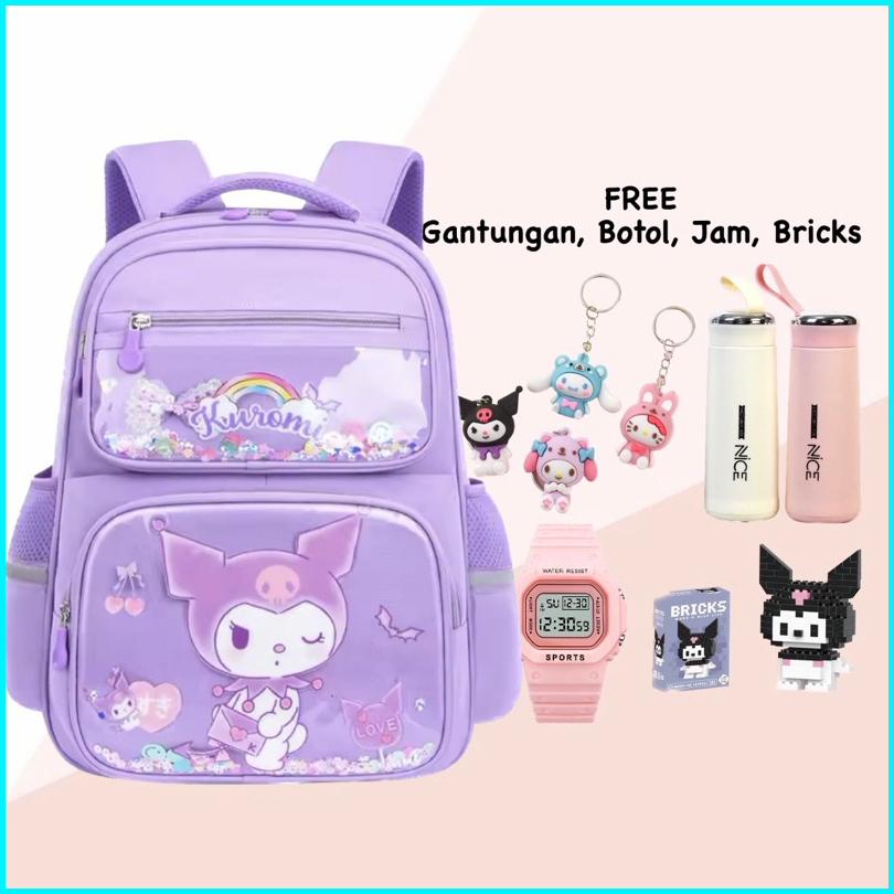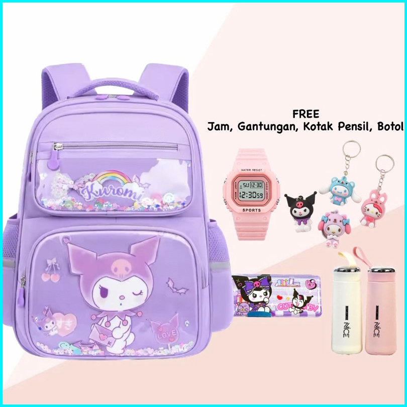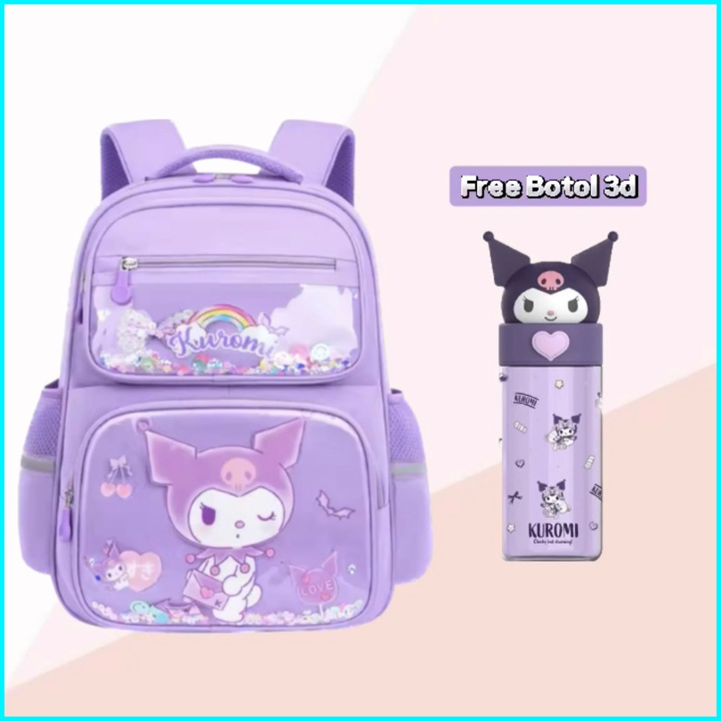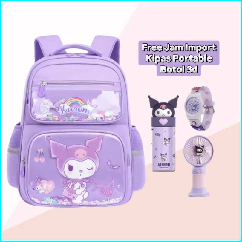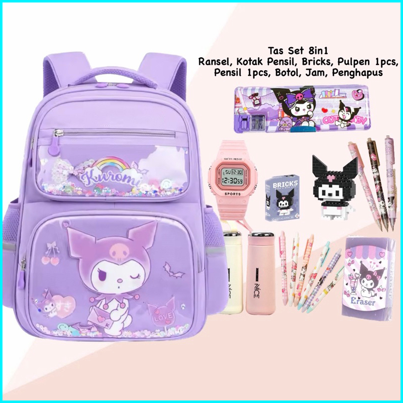 Tas Punggung Ransel Sekolah Sanrio Mika Kuromi 7in1 Paket Lengkap Jam Botol Atk Karakter Tk Sd Smp