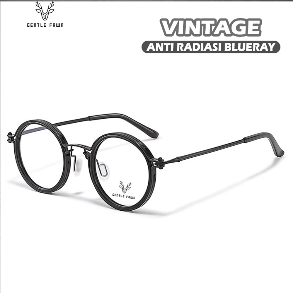 Kacamata Frame Antiradiasi blueray Model Bulat keren Trendi Alloy Tr Vintage style Fashion pria dan wanita Bisa minus Perbatasan tebal 10749