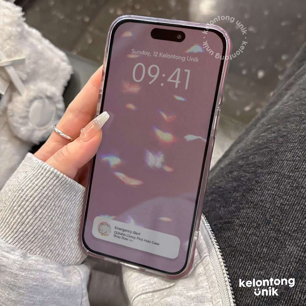 GLENNA Classy Pink Ombre Hologram Case - Hardcase/ Casing HP for iPhone X XS XR XSMAX 11 12 13 14 15 16