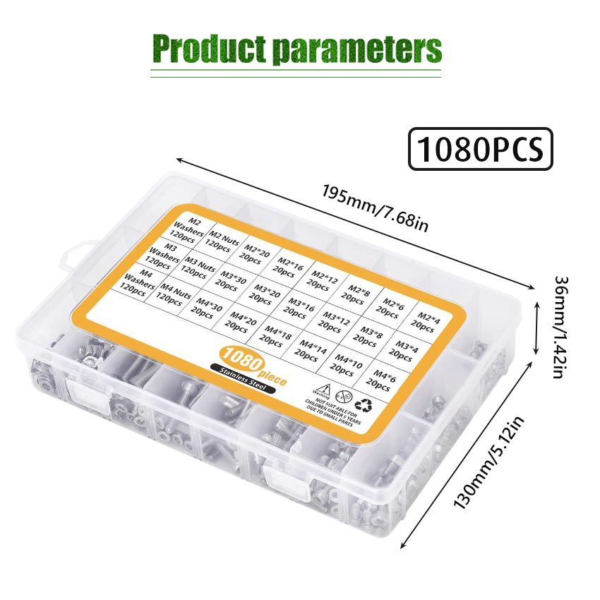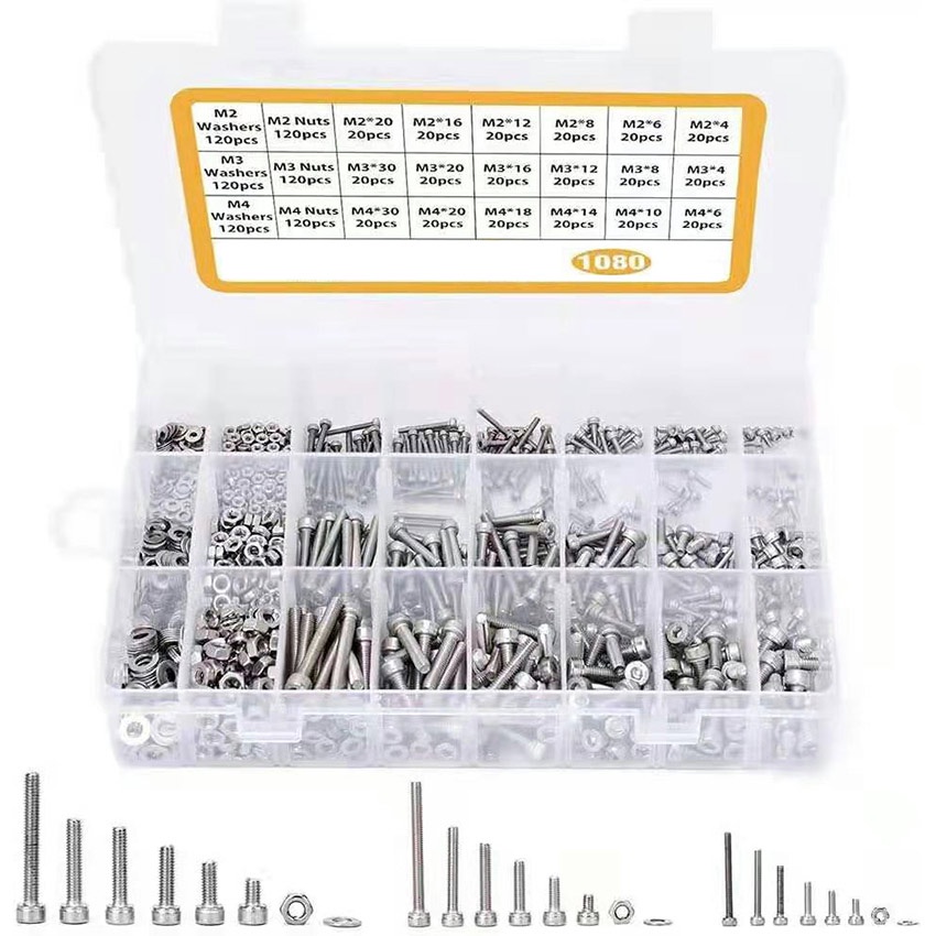 1080pcs/Set Baut Soket Mur dan Mur M2/M3/M4 Stainless Steel Hex Socket Bolt and Nuts Set Fastener Hardware Hexagon Socke