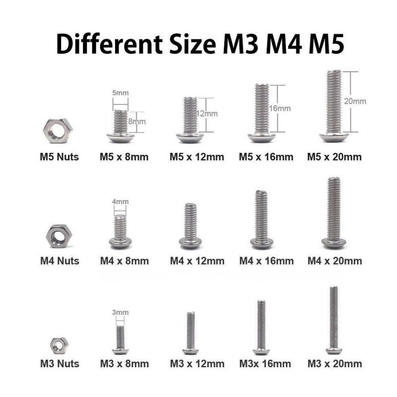 500pcs/set Baut Soket Mur dan Mur Stainless 304 Hexagon Socket Head Cap Screws Set M3/M4/M5