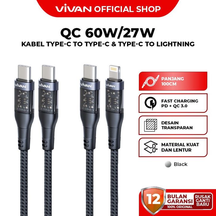 Kabel Data Type C Vivan Kabel Data Seri Explore-C Type C Series to iPhone / Type C to Type C 60W Fast Charging Power De