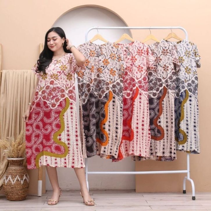 Daster Rayon Tangan Pendek Long Dress Lengan Pendek Motif Busui Wanita Murah Daster Harga Grosir