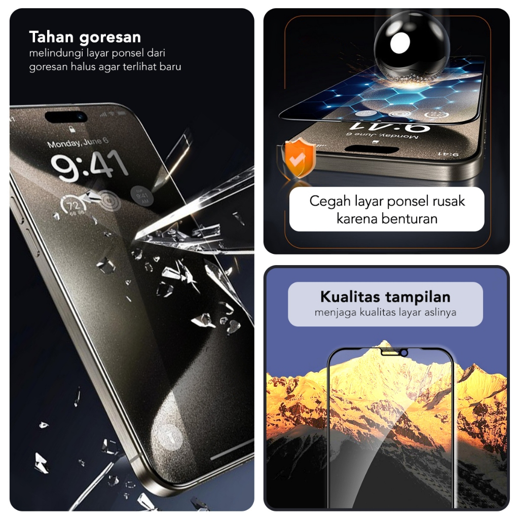 Anti Gores Tempered Glass iPhone X XR XS 11 12 13 14 15 16 PRO MAX