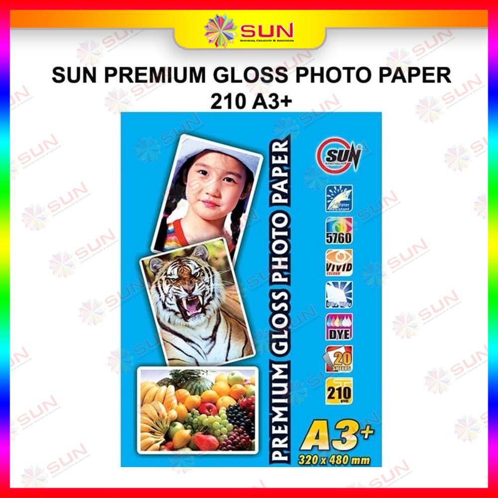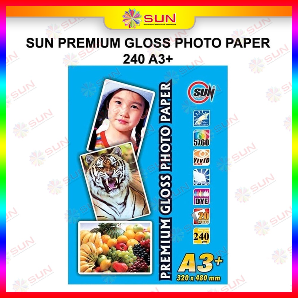 Kertas Foto Glossy A3+ / A3 plus Premium - SUN Premium Gloss Photo Glossy Paper Ketebalan 210, 240, 265 gram ( Support e