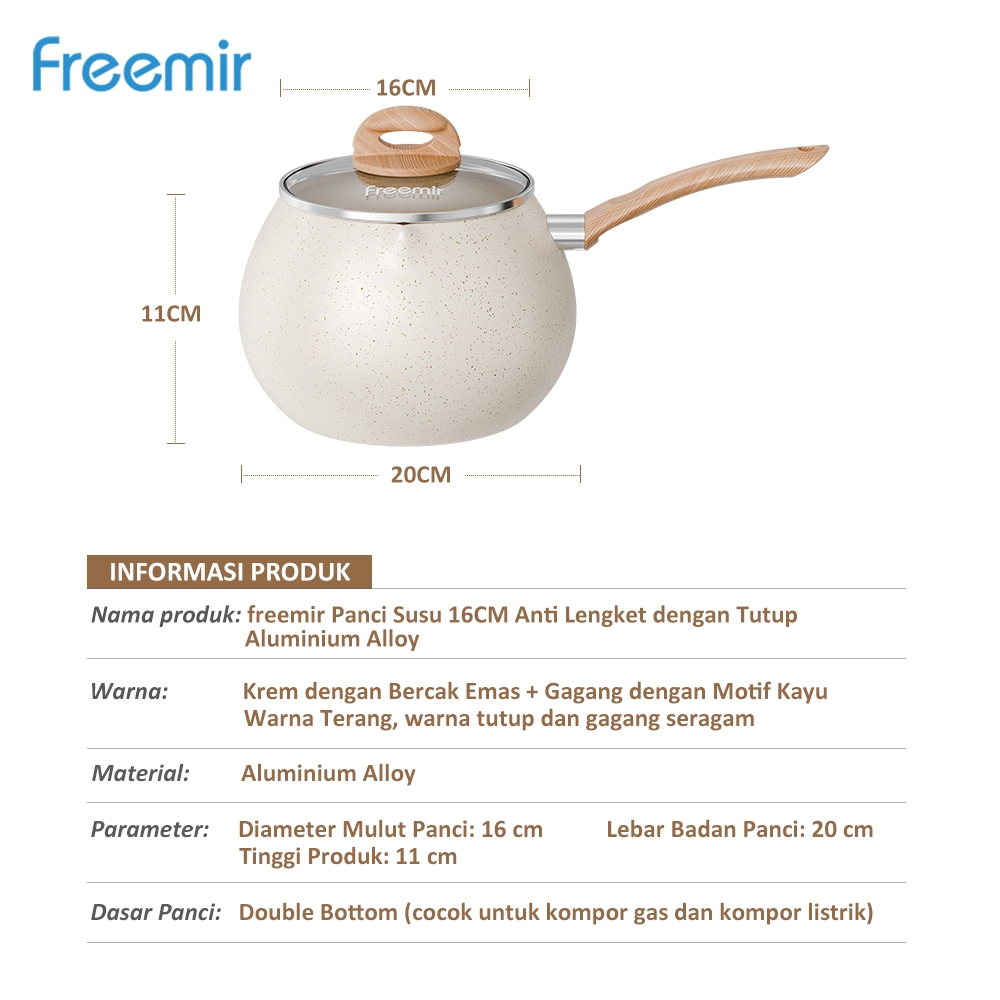 [UPGRADE 2.0] freemir Panci Susu Sauce Pan Gemoy 16 Cm Anti Lengket Tutup Kaca Anti Tumpah