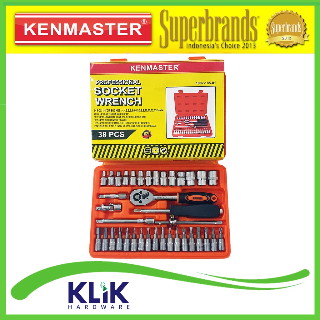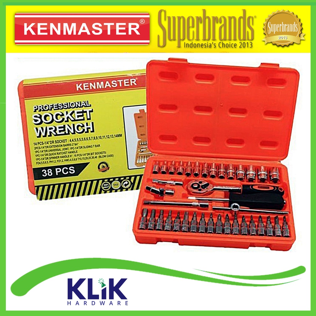 KENMASTER Kunci Shock Sock Sok Set 38 Pcs - Socket Wrench PREMIUM 1/4 Inch