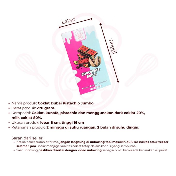 Coklat Dubai Kunafe Pistachio JUMBO - Yayang Dessert terlaris, termurah, dan berkualitas.