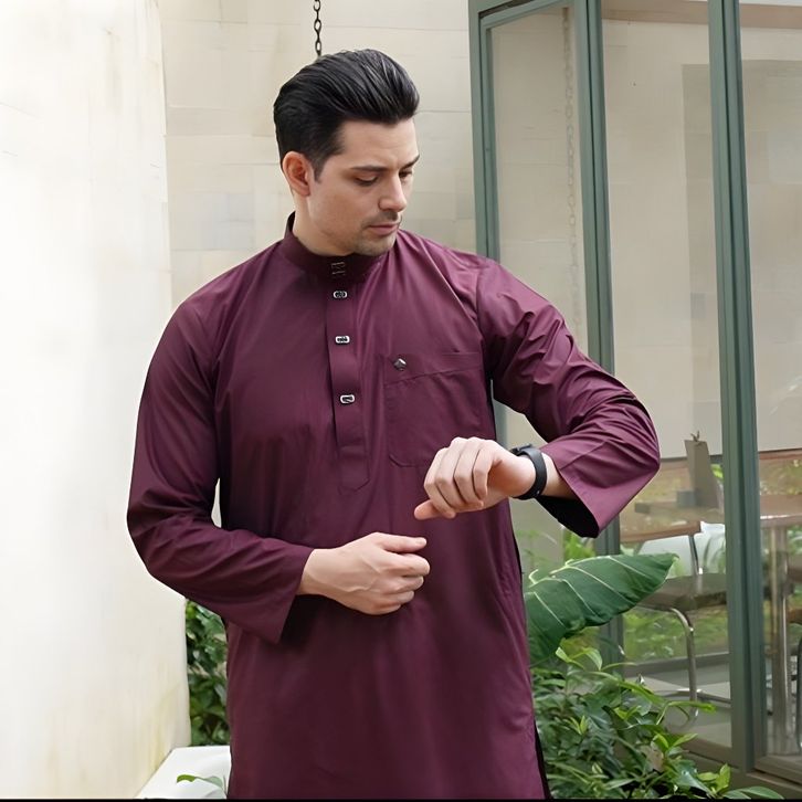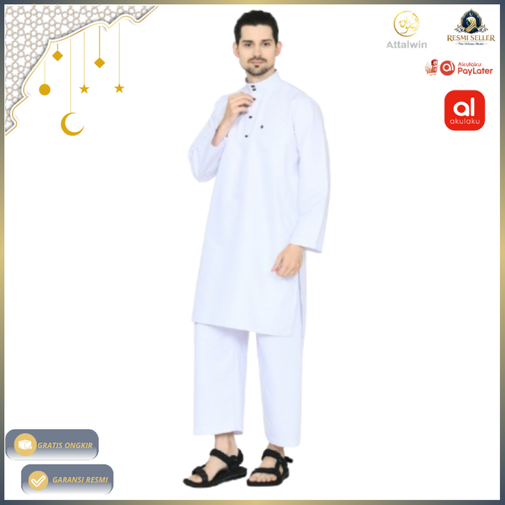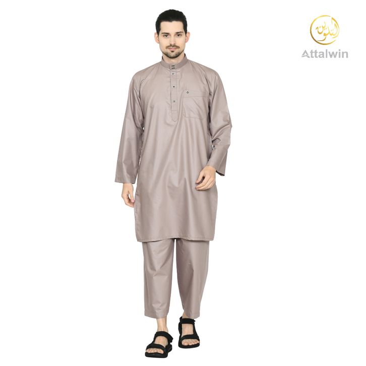 Koko Pria Dewasa Lengan Panjang Baju Pria Set Attalwin Gamis Pria Dewasa Jubah Pria Dewasa Setelan Kurtah Umroh Haji Tan