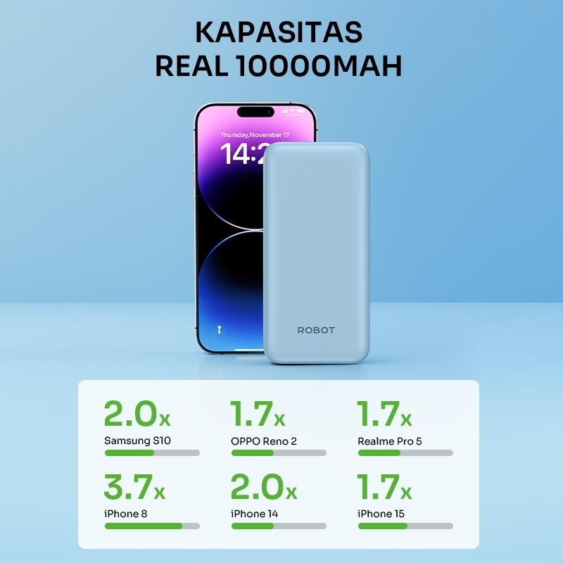 ROBOT Power Bank RT12 Powerbank 10000mAh Dual Output USB-A Dual Input Port Type C & Micro USB Garansi Original Resmi