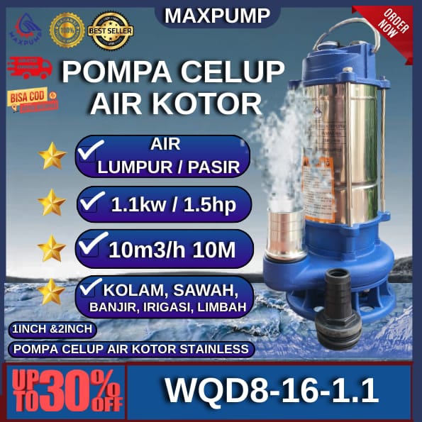 MAXPUMP Pompa Celup Air Kotor 1INCH & 2INCH 1.1KW 1.5HP NONAUTO Submersible Pump air Kotor MANUAL