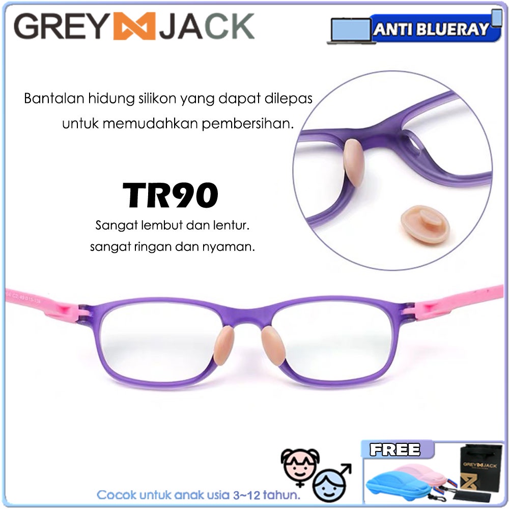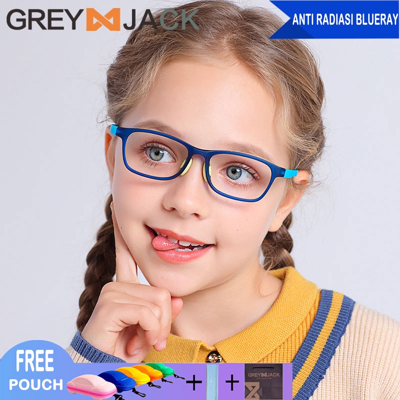 (FLASH SALE)Grey Jack Kacamata ANAK Antiradiasi Blueray Gadget Komputer HP TV Bahan TR90 Ringan dan Lentur Unisex