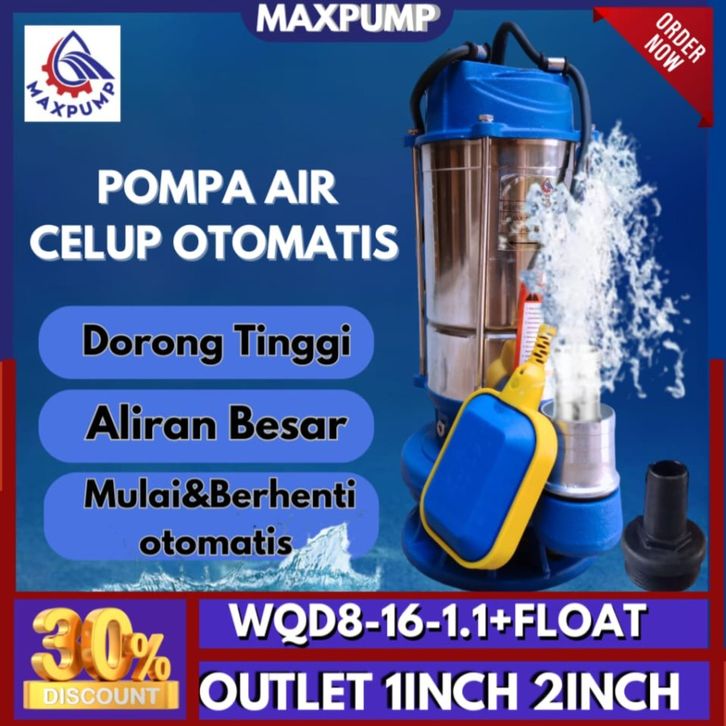 MAXPUMP Pompa Celup Air Kotor Outlet 1IN 2IN 1phase 1.1kw Submersible Sewage Pump Otomatis Pump kuras banjir air kotor