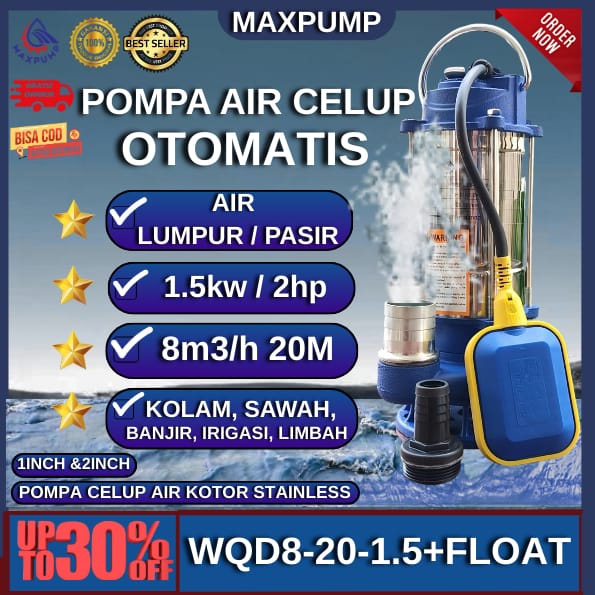 MAXPUMP Submersible Pump Pompa Celup air Kotor 1INCH 2INCH 1.5kw Stainless Kuras Air OTOMATIS Pompa