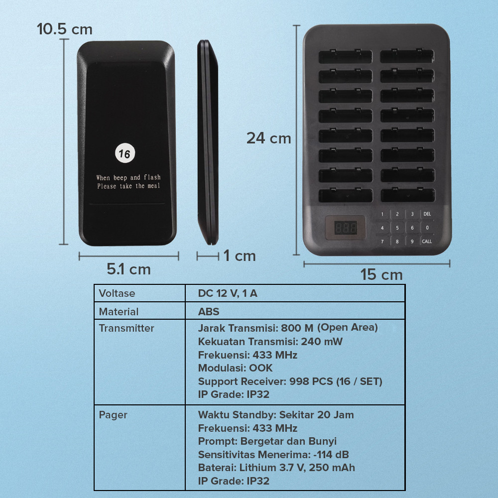 DISKON RTKS Wireless Calling System Restaurant Mesin Antrian 16 Pager - CTP301/CTP302