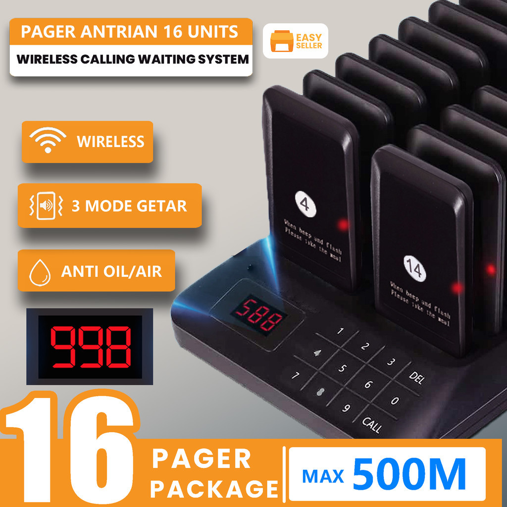 DISKON Pager Antrian Food Court 10/16 Units Wireless Calling System Restaurant Mesin Antrian 10/16 Pager 100% ORI [EasyS
