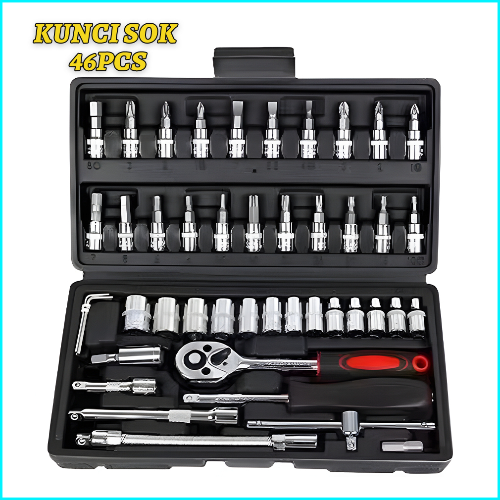 Set Kunci Shock 1 4 Socket Obeng Socket Set 46 Pcs