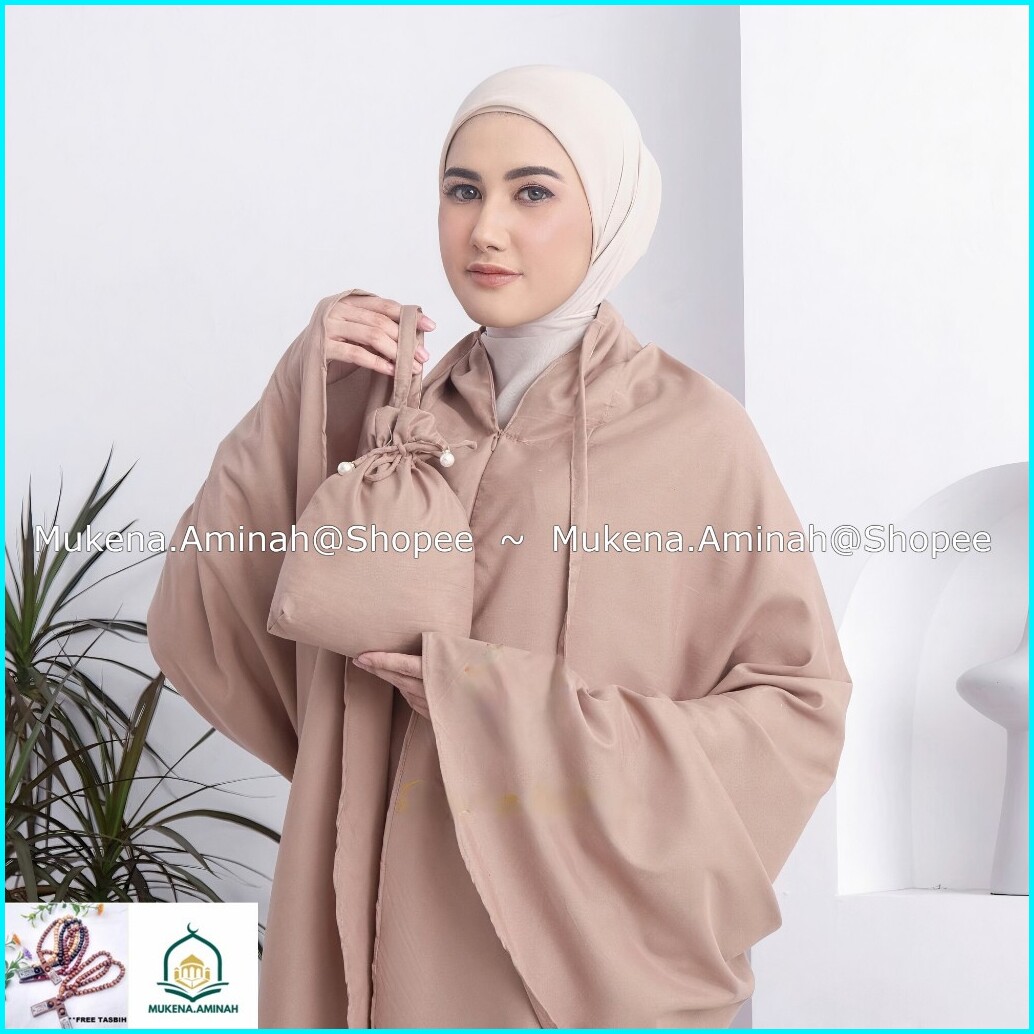 Mukena.aminah Mukena Dewasa Traveling Mini Pouch 2in1 Resleting Polos Naira Ayanaa Katun Mikro Premium Mewah Lato-lato L