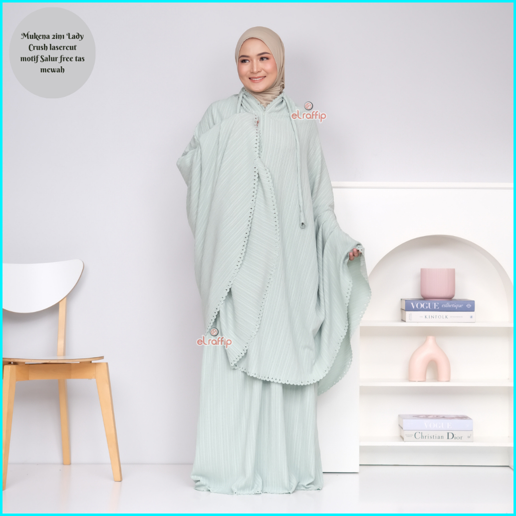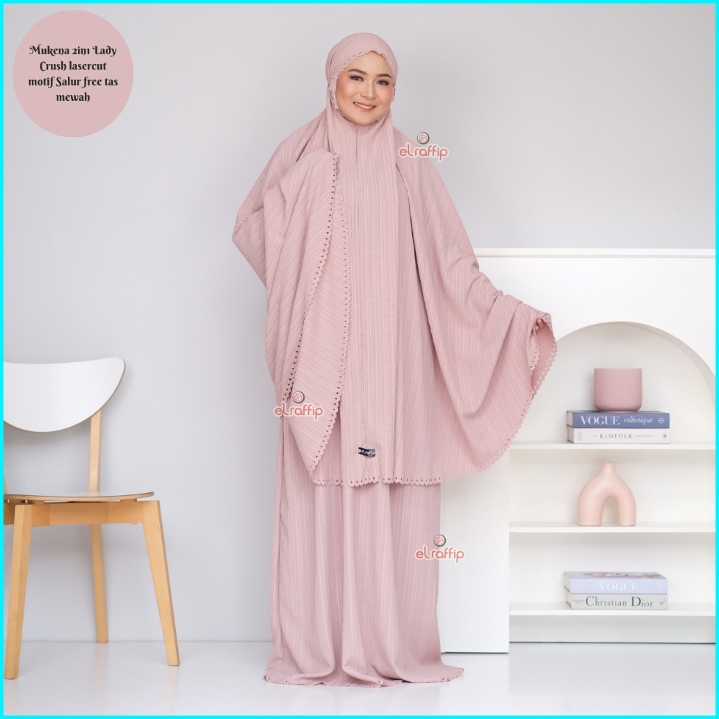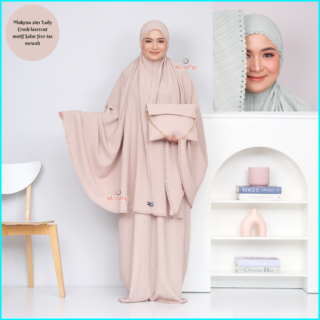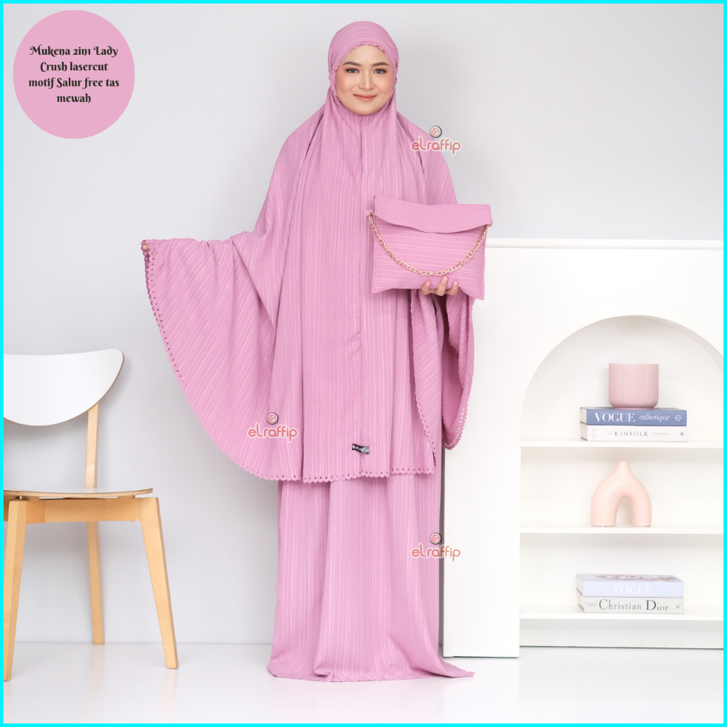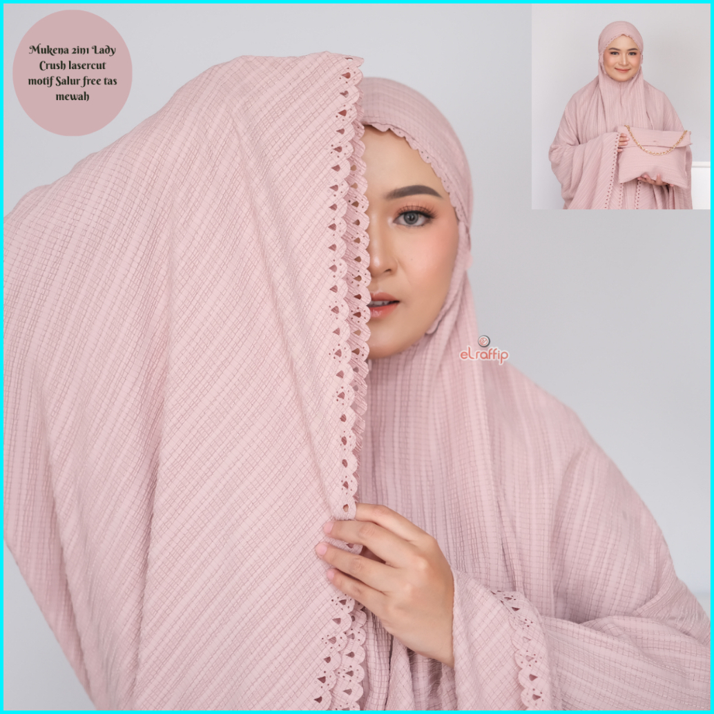 Elraffip-mukena Dewasa 2in1 Lady Crush Lasercut Tas Mewah