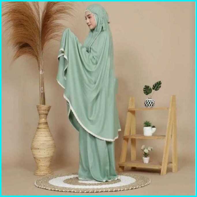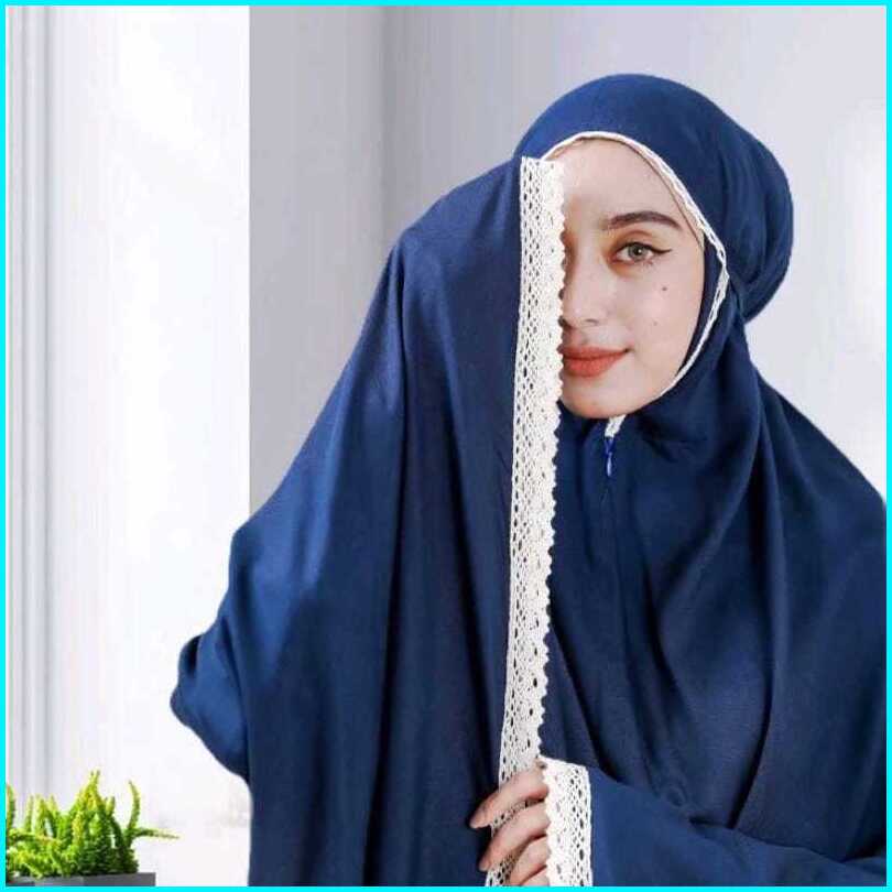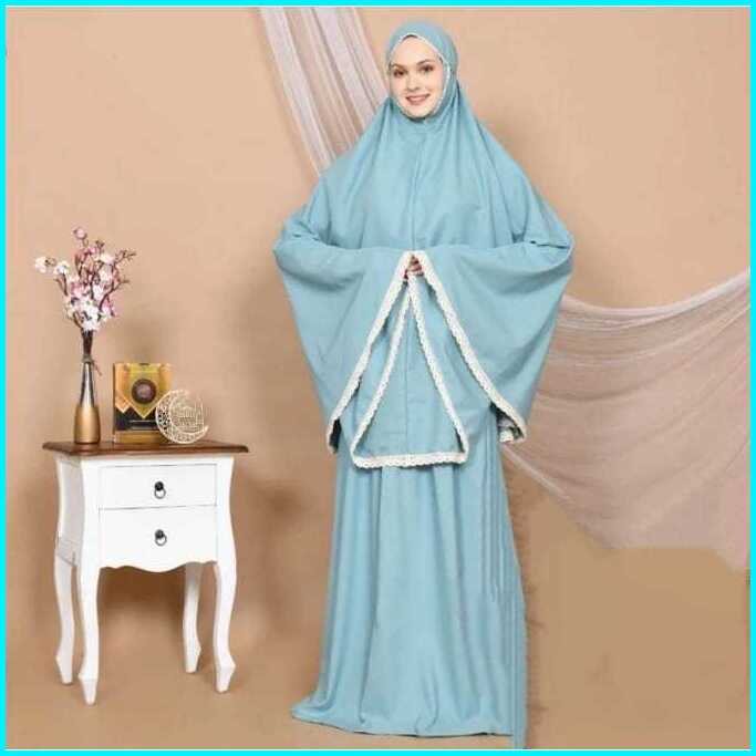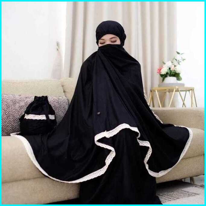 Mukena Dewasa Katun Polos Renda Rajut Premium Traveling Free Tas Tasbe Bahan Adem