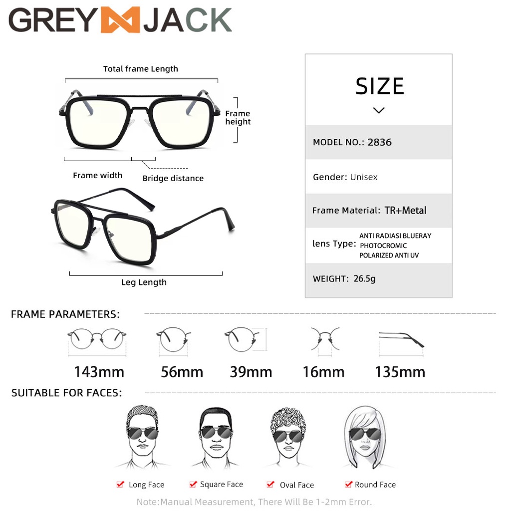 (FLASH SALE)GREY JACK Kacamata Pria Style Tony Stark Anti RadiasiPhotocromic+Polarized 3IN1 Lensa Multifungsi Pria 2836