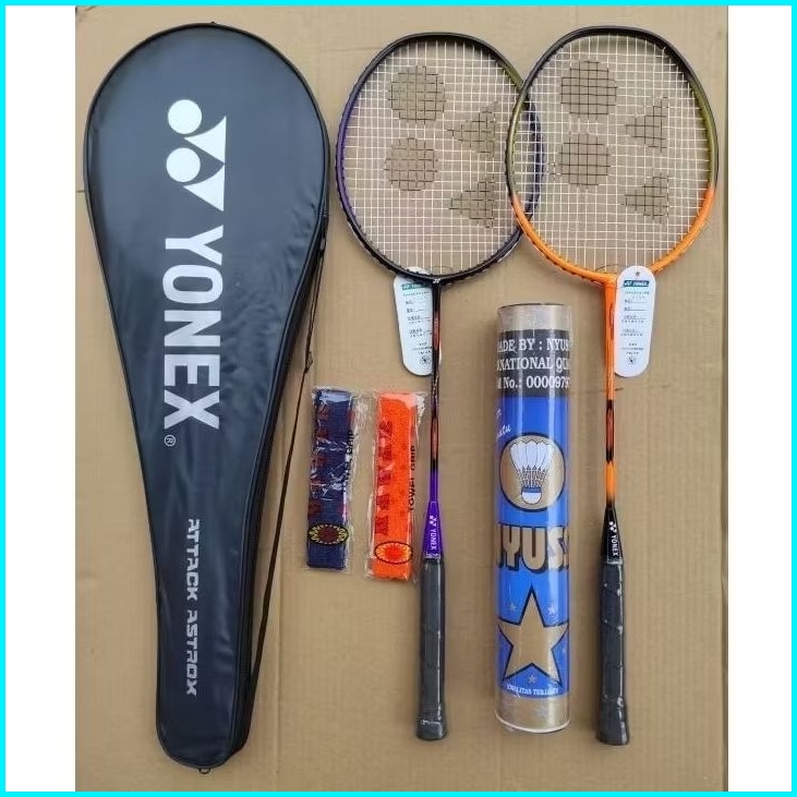 Raket Badminton Langsungan Paket Lengkap Raket Grip Tas Shuttlecock