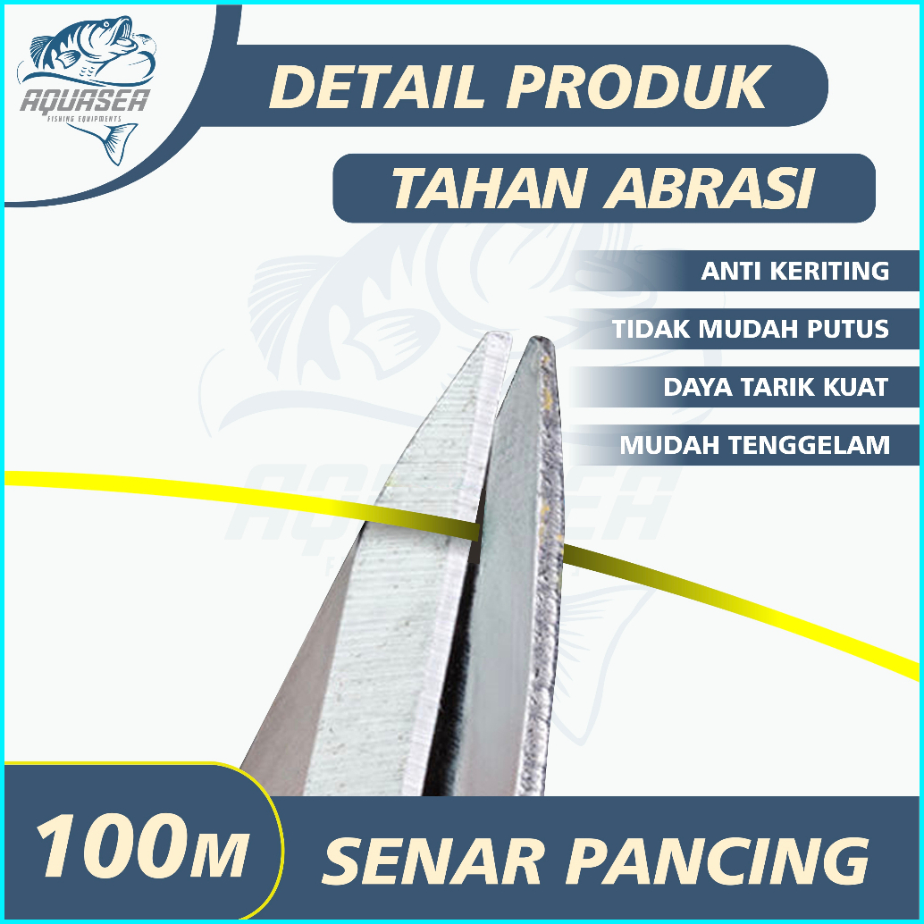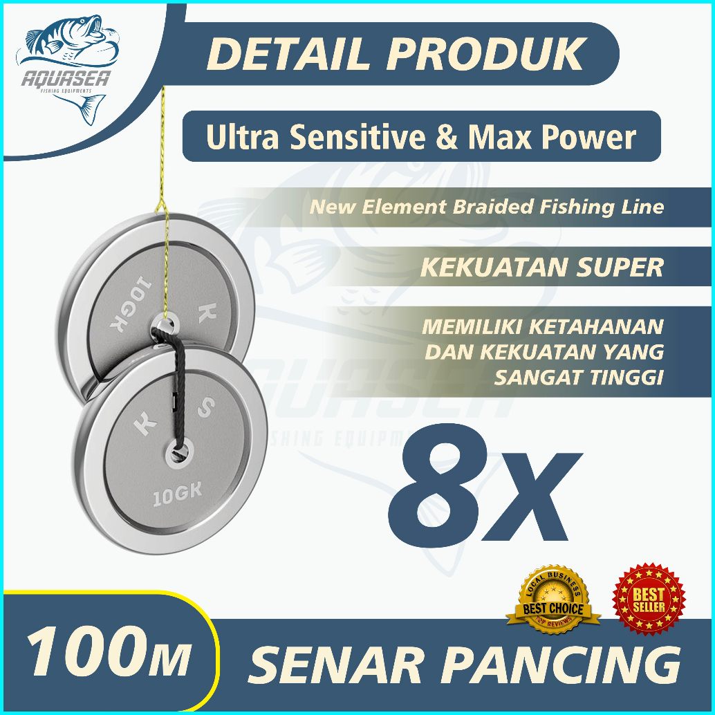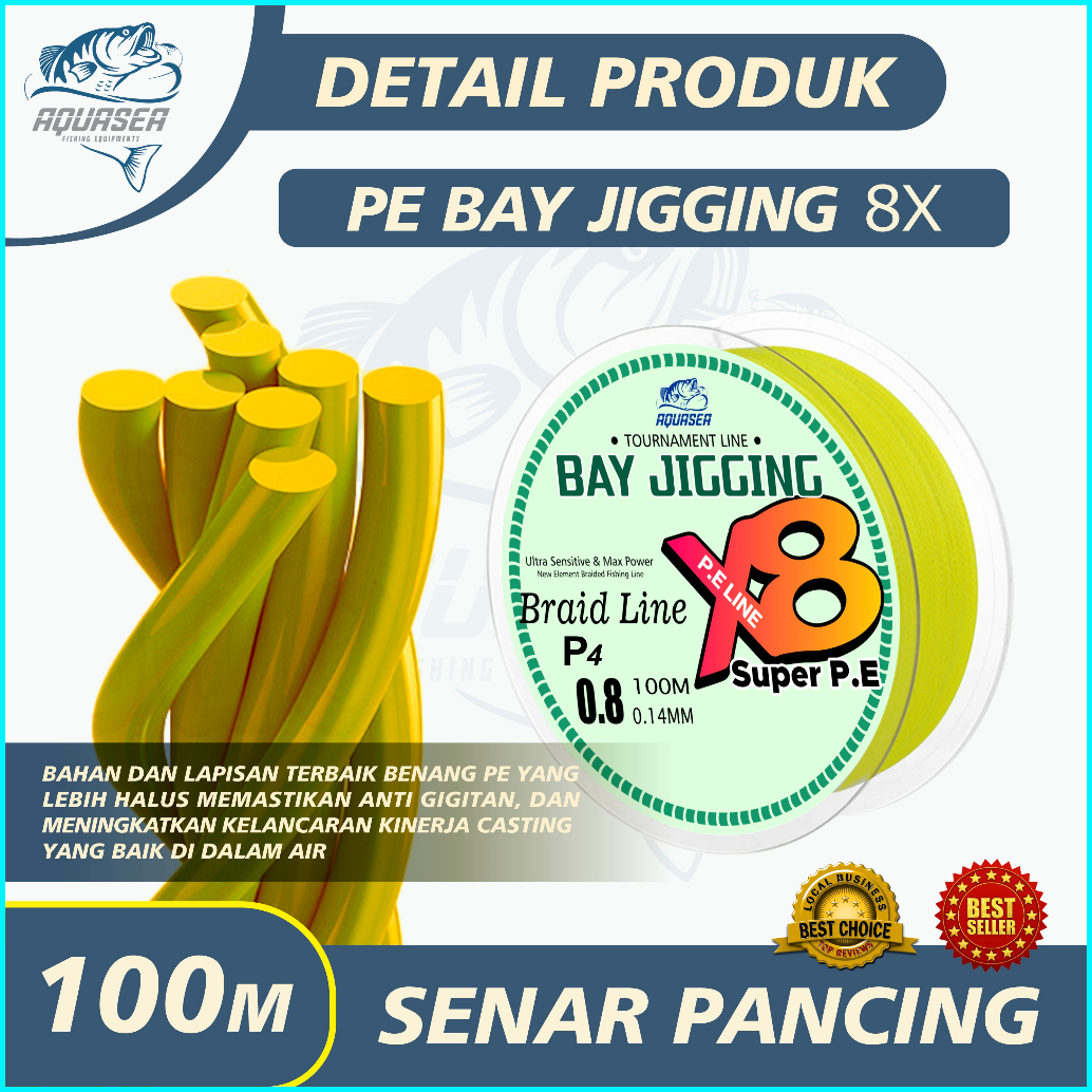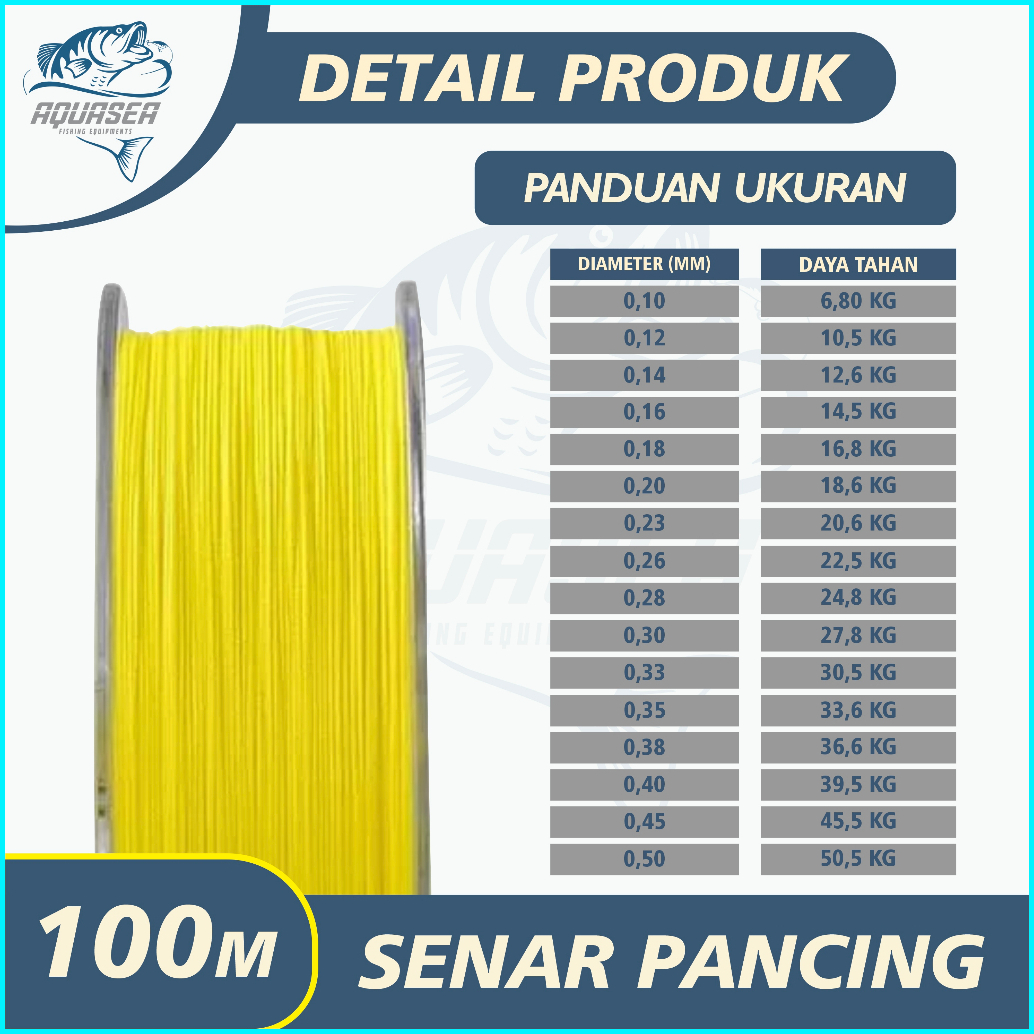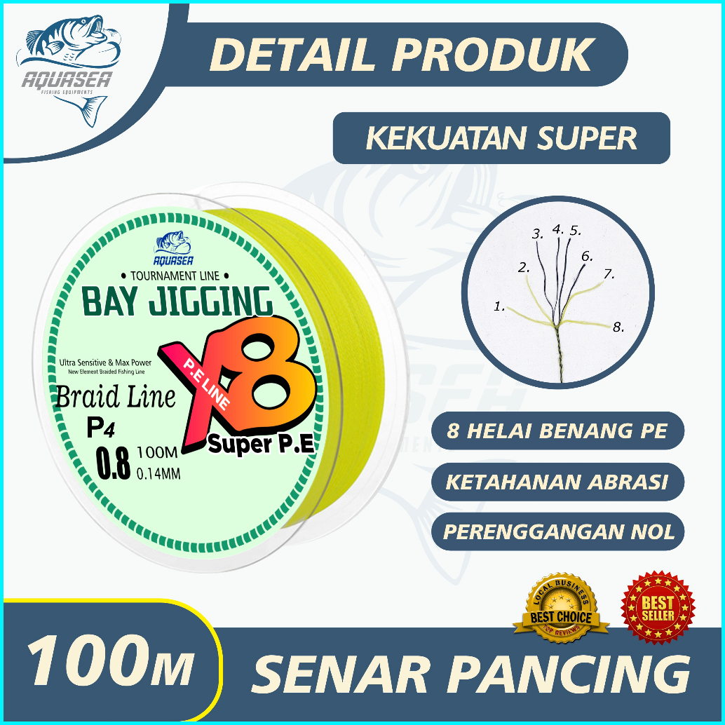 Aquasea - Senar Pancing Pe Kuning 100m Pe 6.80kg-50.5kg Sangat Kuat Pancing Pe X8 Bay Jigging