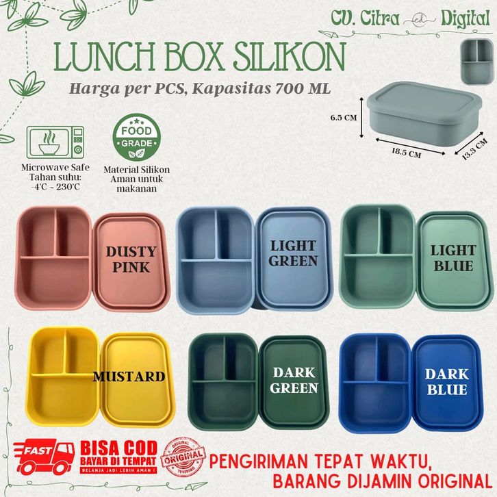 Kotak Lunch Box Sekat Silikon / Lunch Box Sekat Silicone / Bento Box