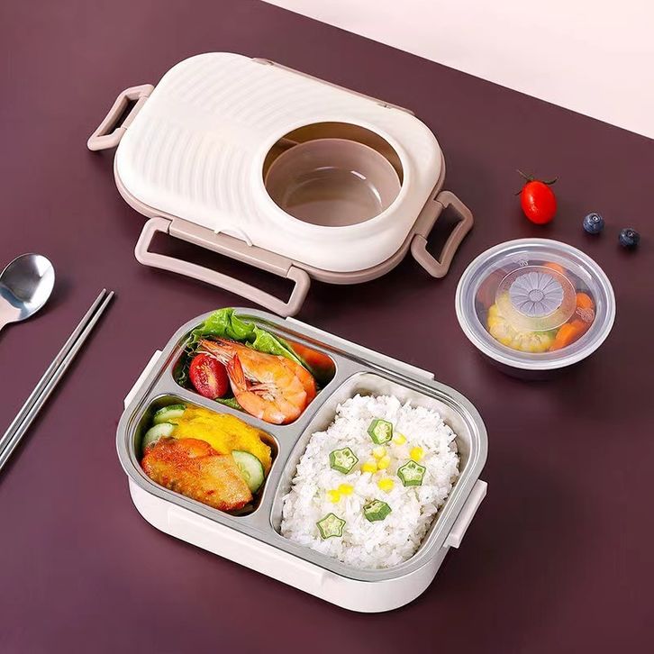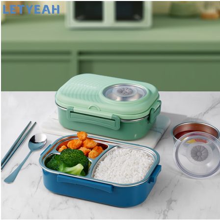 1000mili kotak makan stainless 3 sekat+tempat sup 200mili /Lunch box stainless tahan panas dan anti tumpah