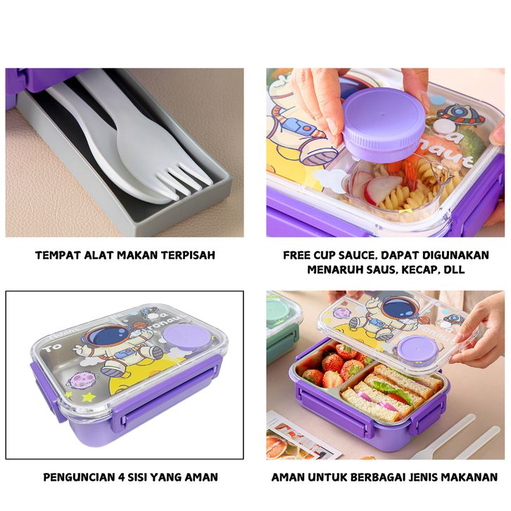 Kotak Makan Stainless Anti Campur Karakter Dinosaurus Astronot Lunch Box Anak SD Motif Unicorn Dino