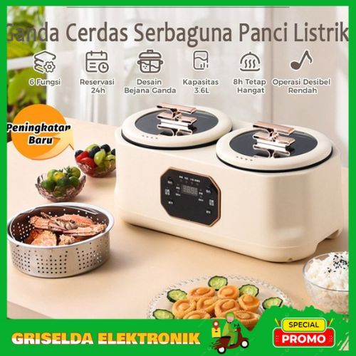 Panci Listrik Multifungsi Double Pot Serbaguna 36L 6IN1 Panci Listrik Han River Panci Listrik Goto Multifungsi Termurah