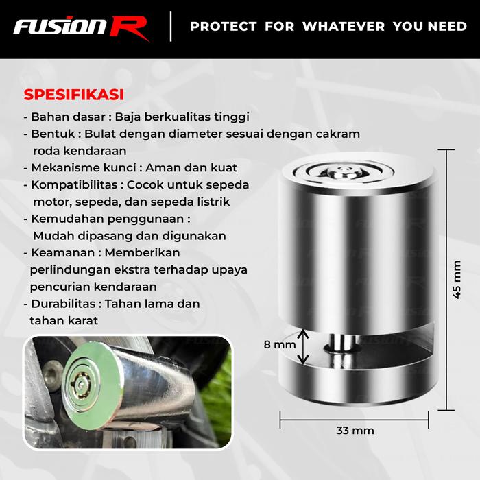 Gembok Kunci Disc Cakram Bulat Baja Motor Sepeda Kuat Aman Disk Lock