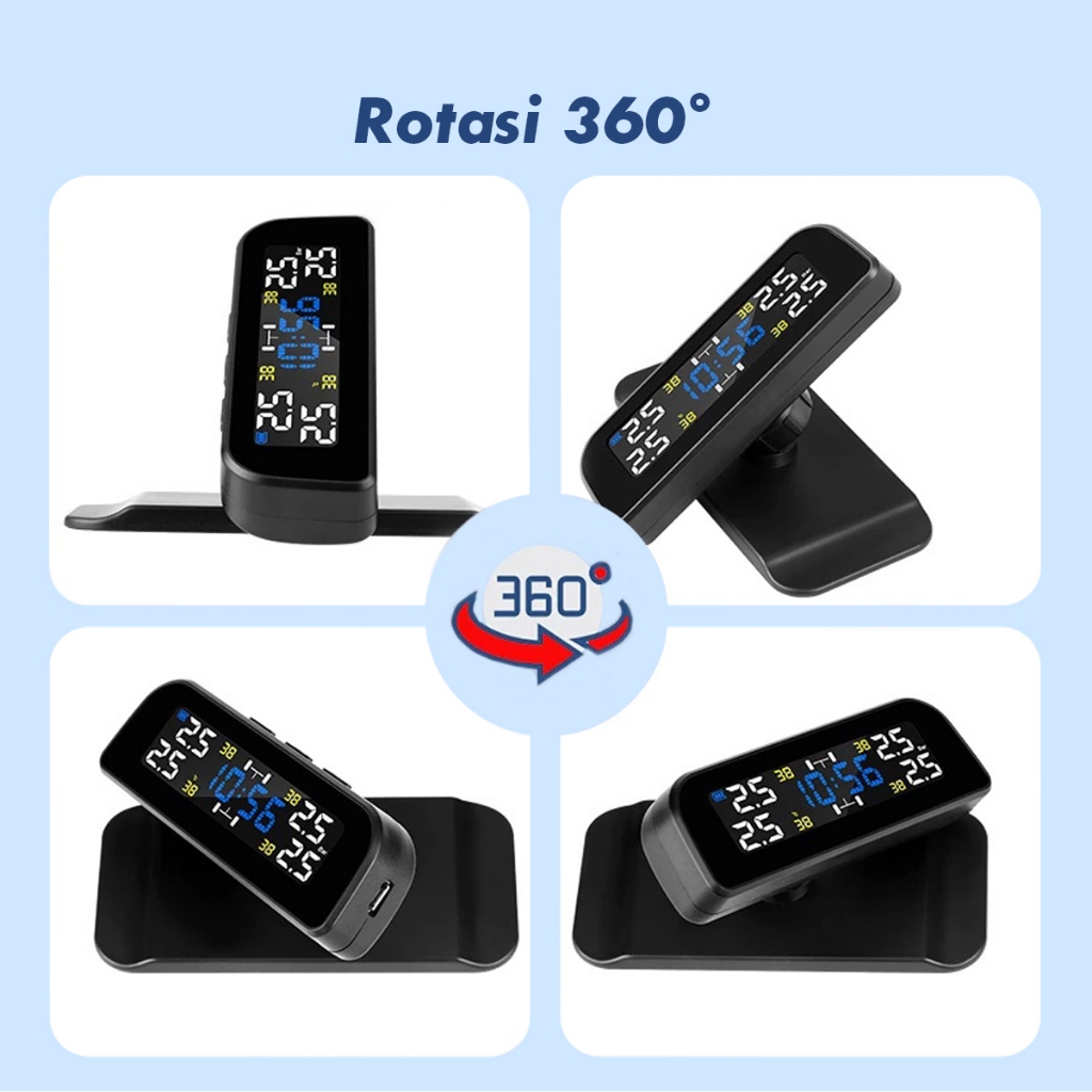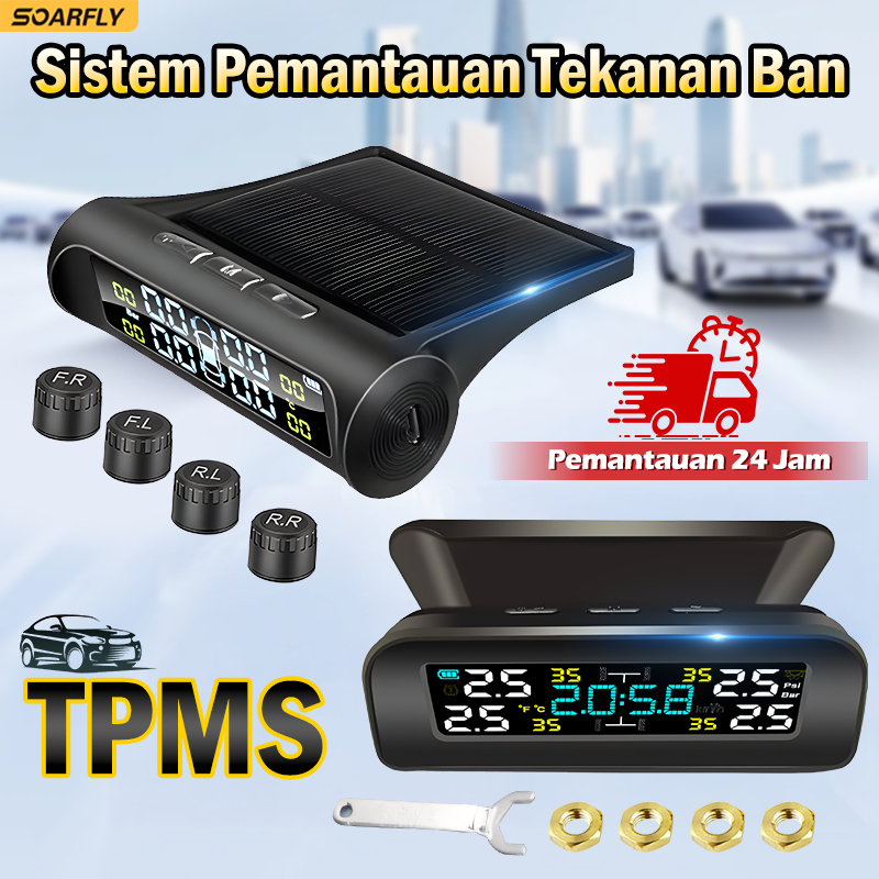 TPMS T12 Alarm Pengukur Tekanan Ban Mobil Tire Layar Monitor System LCD Solar Power pemantauan tekanan ban