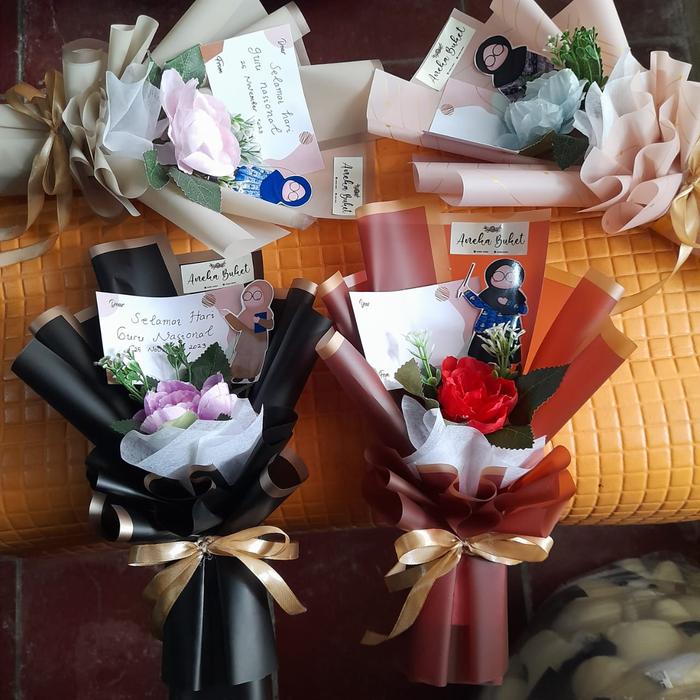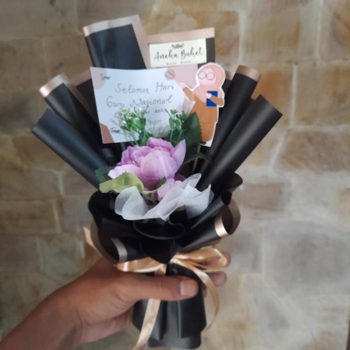 Buket Hari Guru/Buket Bunga Animasi Guru/Buket Spesial Hari Guru Bisa Tambah Snack Mandiri - Hitam