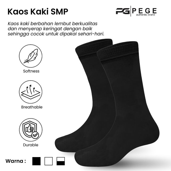 Kaos Kaki Anak SMP Laki Laki Perempuan Koas Kaki Sekolah SMP Warna Hitam Putih - PGK SMP