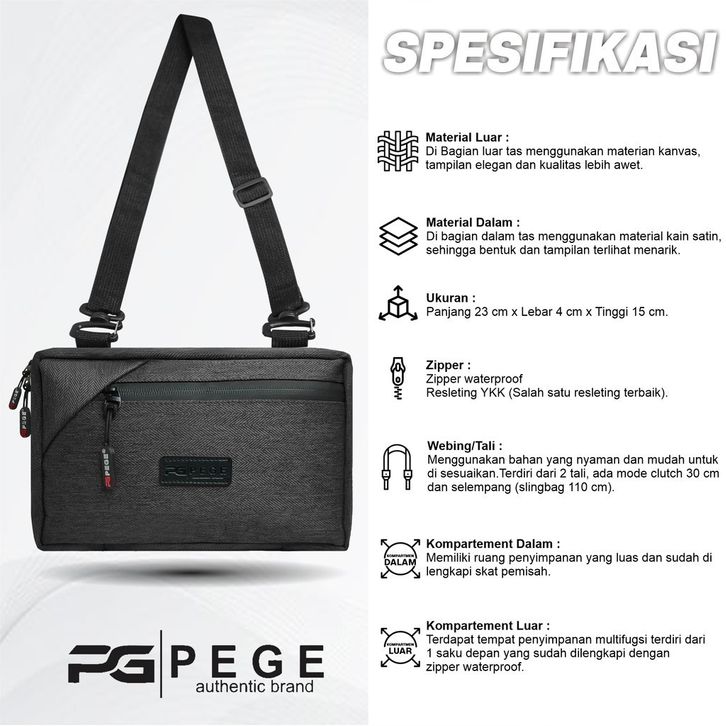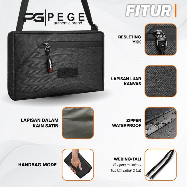Tas Slempang Waistbag Unisex Bahan Kanvas PEGE Hero Tas Tangan Handbag 3IN1 - PG 9057