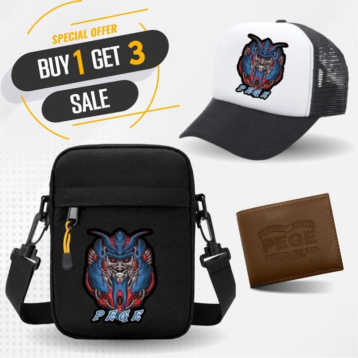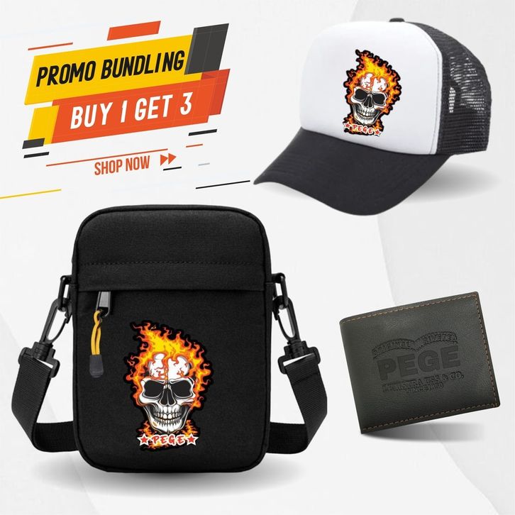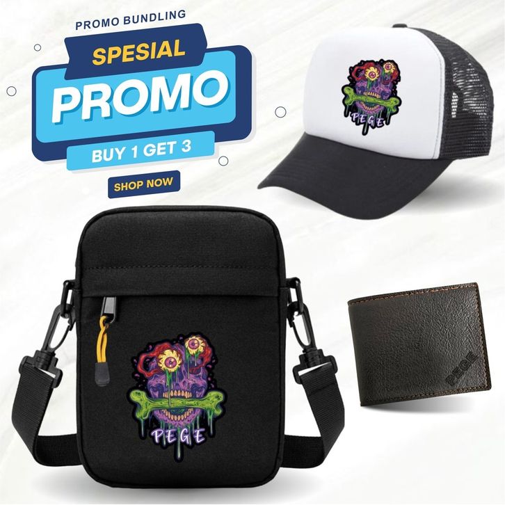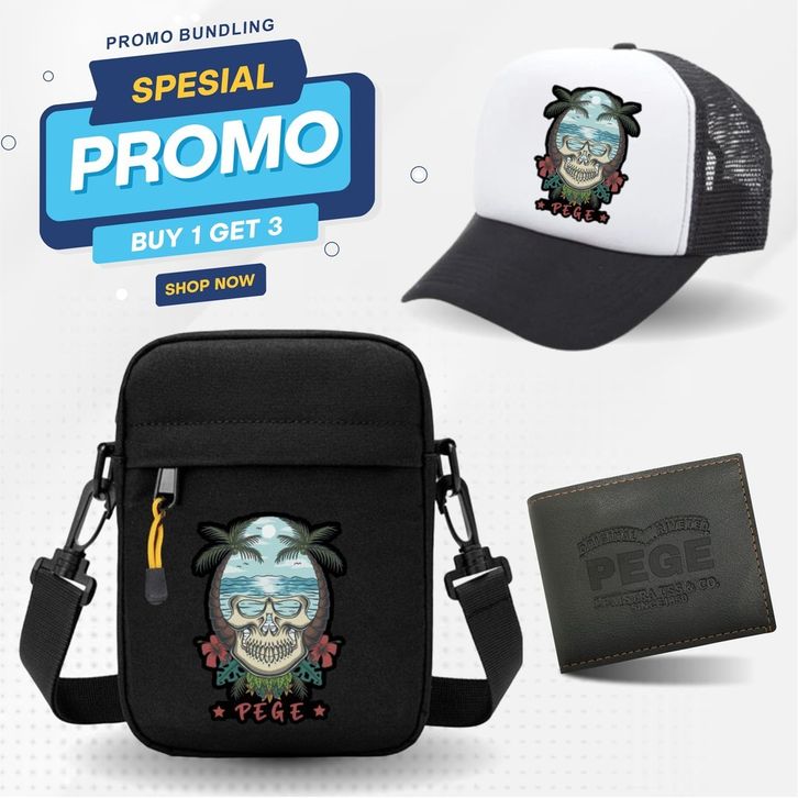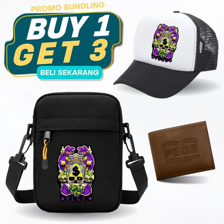 PROMO BUNDLING TERMURAH Beli 1 Dapat 3 Tas Slingbag PEGE Selempang Topi Dompet - PG Bundling 07