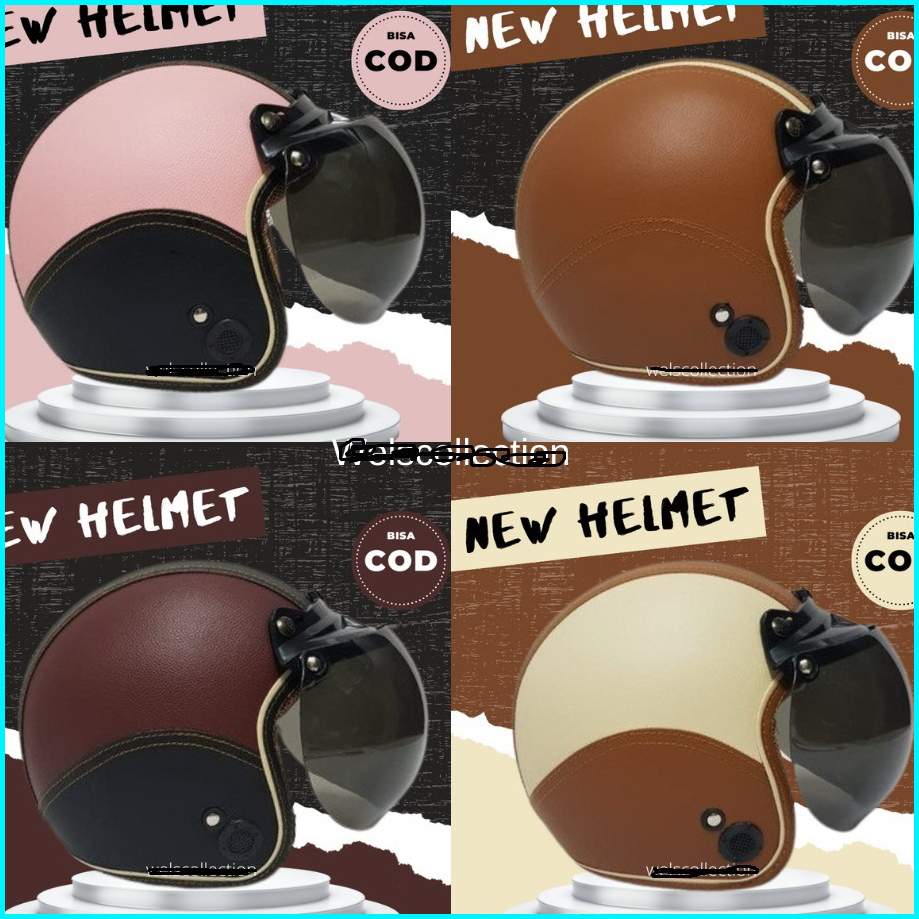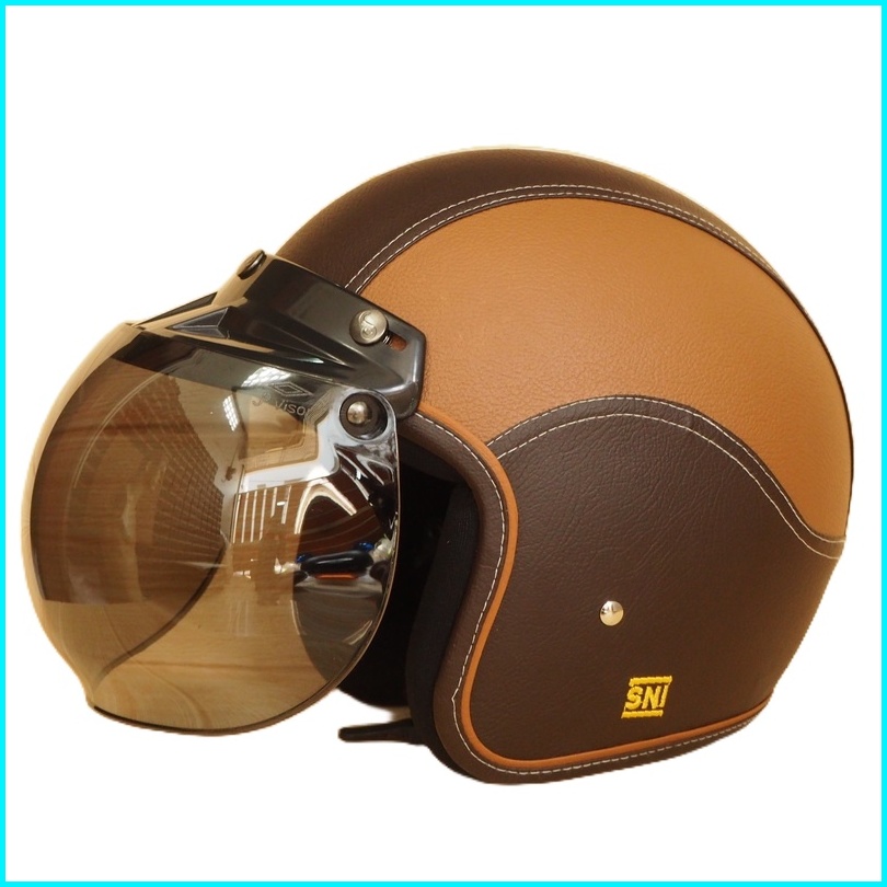 Helm Bogo Classic Bahan Kulit Sintetis Motif Jeruk Sni Dewasa Pria Dan Wanita Boggo Retro Klasik Glossy Kaca Datar Cembu