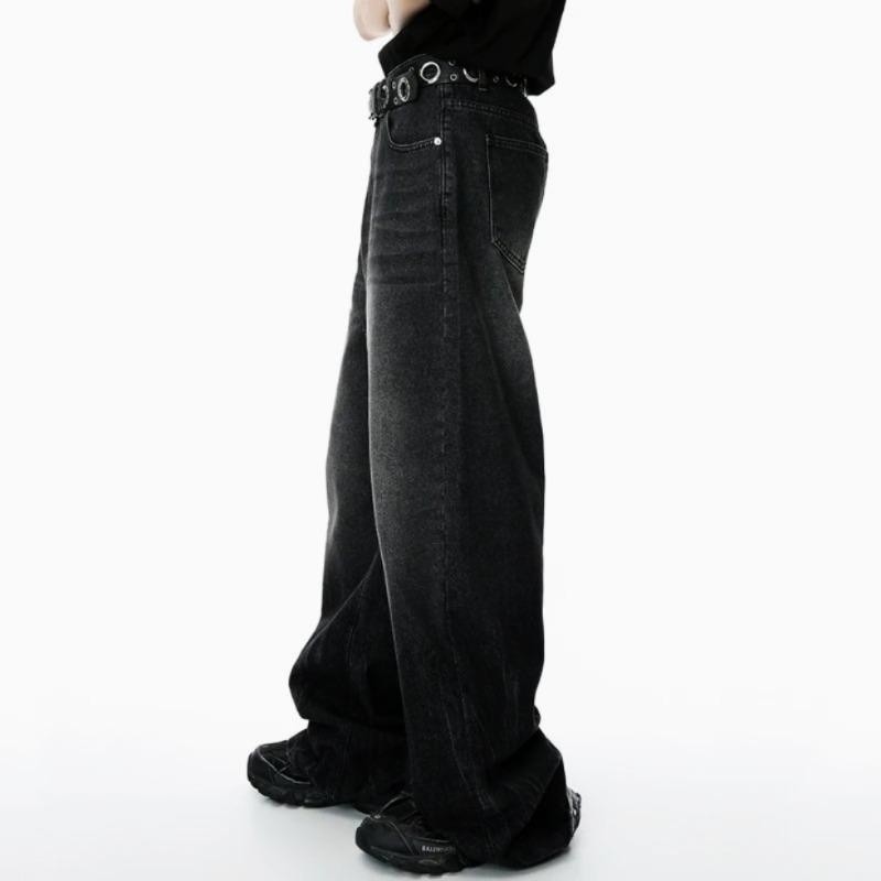 Celana Jeans Baggy Cargo Kulot Pria Jumbo Black Wisker Loose Fit Reguler Standard Denim Washed Skena Celana Baggy Jeans