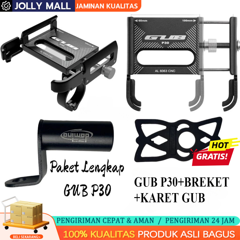 Gub P30 Original Holder Hp Motor Full Besi Alumunium Alloy Breket Tempat Handphone Dudukan Penyangga Tatakan Ponsel Di S
