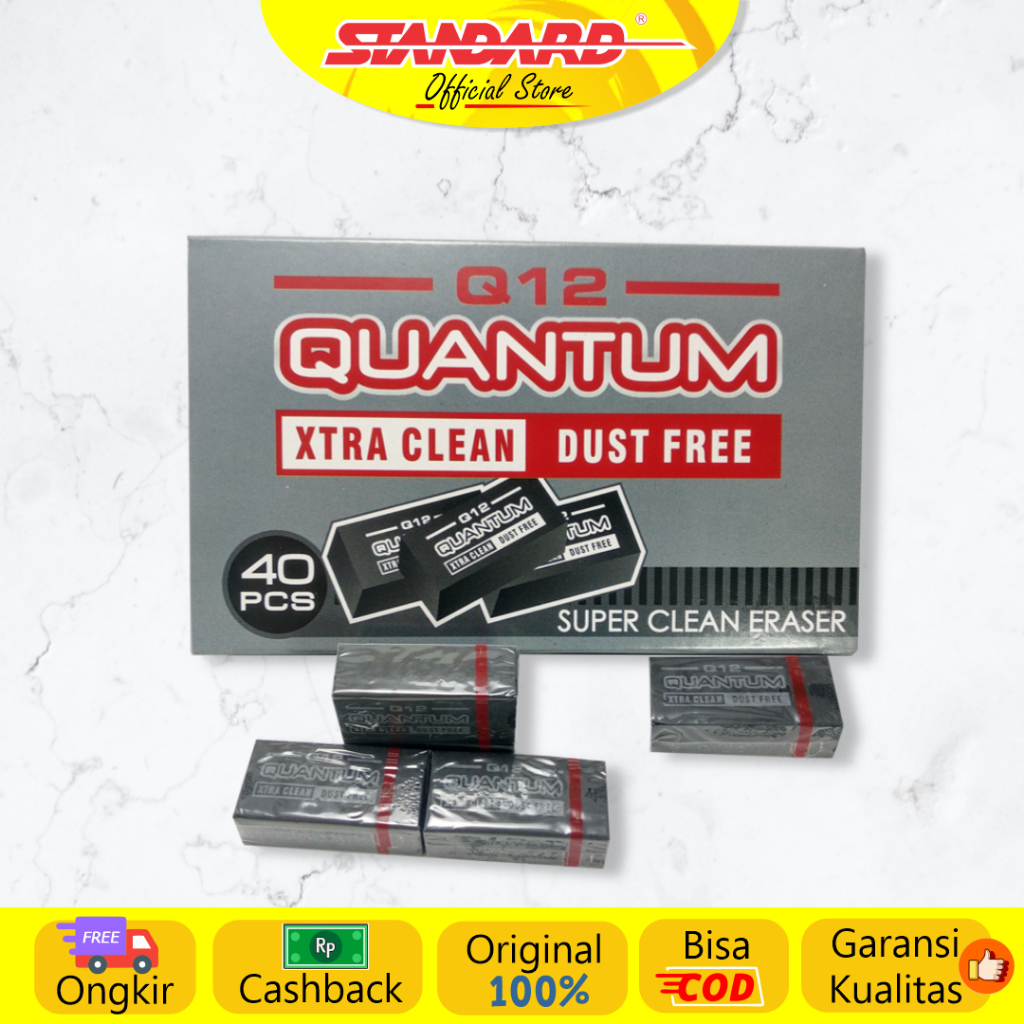 Standard Quantum Eraser - Q12 Warna Hitam / Q10 Warna Putih Isi 40 Pcs ( Penghapus / Setip Pensil )