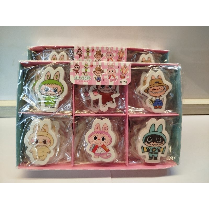 Labubu 30pcs, Cinnamoroll 36pcs, Ice Doll 48pcs, Cute Bunny 36pcs, Kuromi dkk 36pcs, Dinosaurus 48pcs, Hello Eraser 18pcs, Capybara 36pcs, Capybara 30pcs, Labubu Panjang36pcs, Labubu Love 36pcs